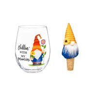 "Chillin with my Gnomies",17 OZ Stemless Glass with Garden Gnome Stopper, Gift Set